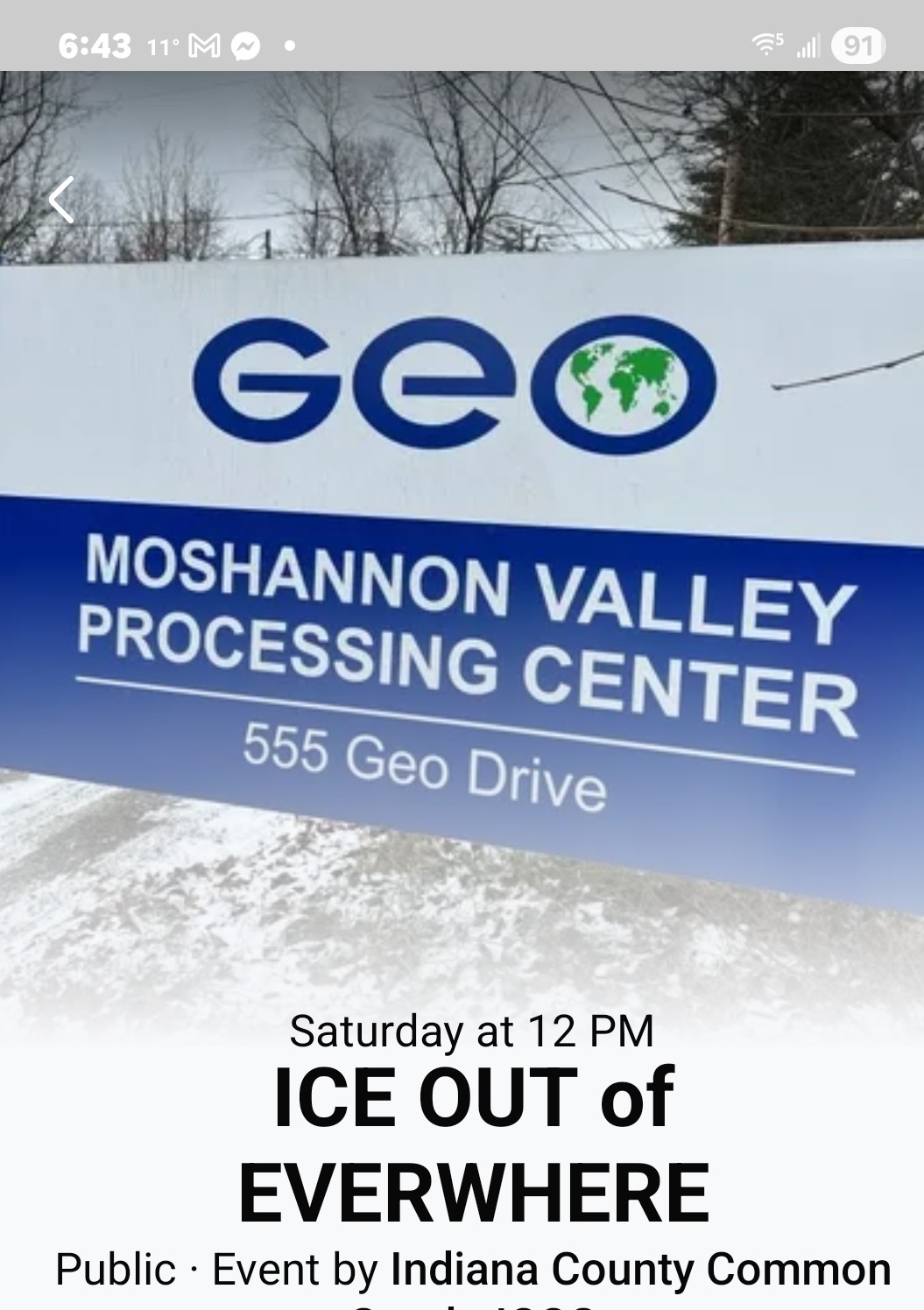 We will be meeting at Moshannon Processing Center in Clearfield County at 12 PM on January 31st, 2026. If you are interested in carpooling please let us know by emailing unitearmstrong@gmail.com. Our friends in Indiana have invited us to join them to protest outside of the facility as we have protested there already a few times last summer. If you do decide to join us, please dress accordingly. It is bitterly cold outside.